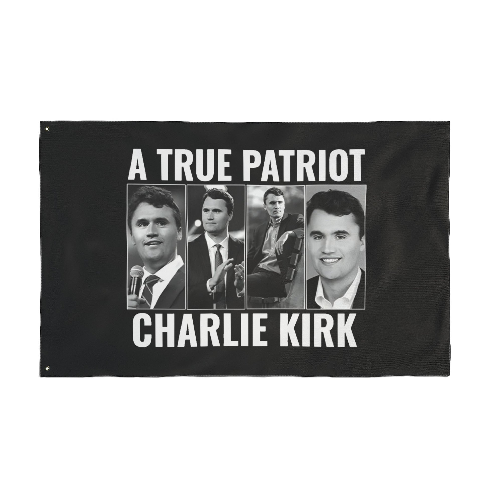 Charlie Kirk double-sided flag, A True Patriot flag, WE ARE CHARLIE flag, patriotic memorial banner, American-made tribute flag